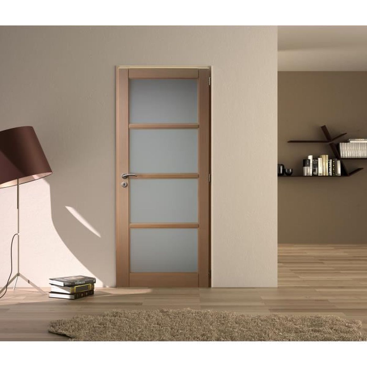 Bloc Porte Bois Hetre Vitre Nova H 204 X L 73 Cm Poussant Droit