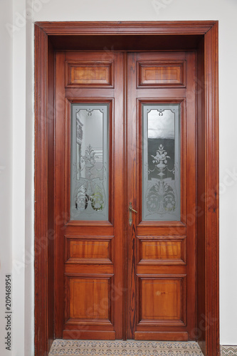 Double Porte En Bois Ancienne Avec Vitrage Et Dessins Art Deco