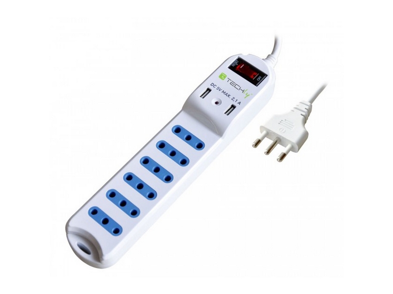 Multipresa Elettrica 6 Prese Italiane 10a Con 2 Porte Usb Elmi