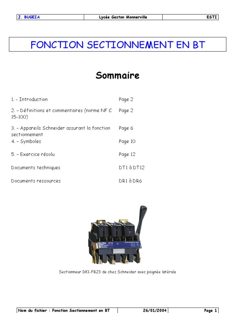 Fonction Sectionnement En Bt Sommaire Pdf Telechargement Gratuit