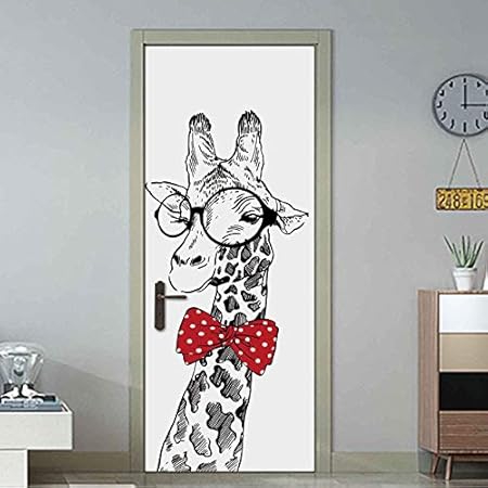 Fenjinsheng Stickers Porte Girafe Noir Et Blanc Creatif 3d
