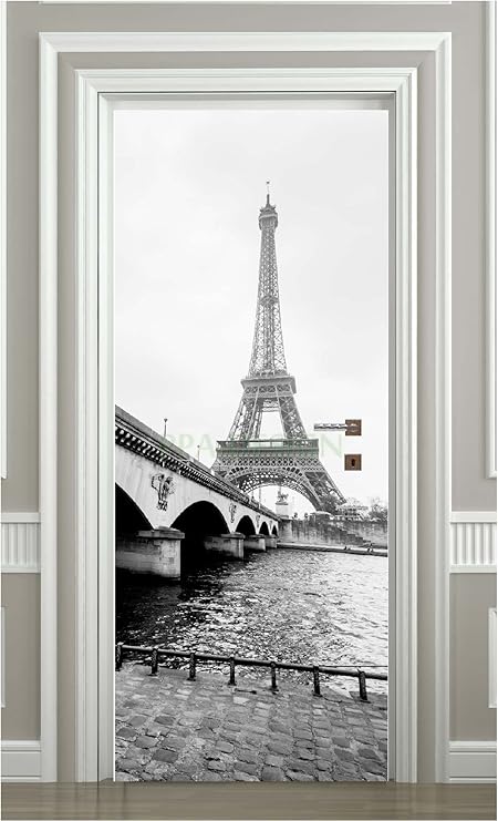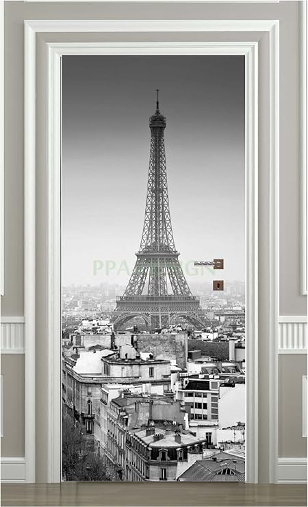 Sapp7011 Sticker Porte Tour Eiffel Noir Et Blanc 63x204cm Cuisine