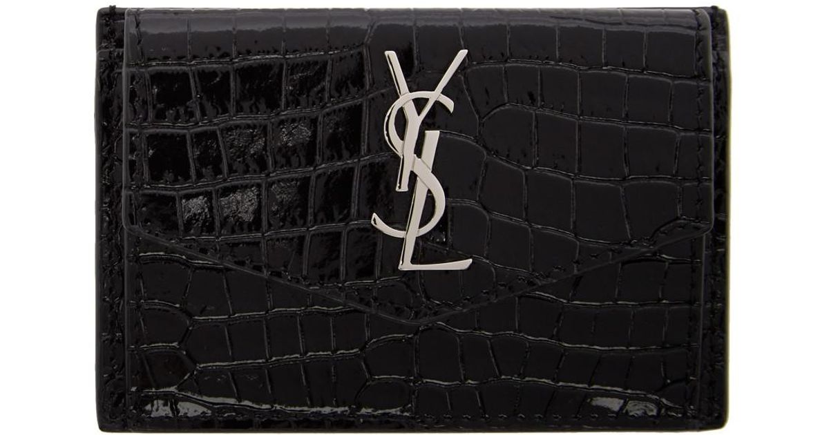 Saint Laurent Leather Black Croc Uptown Card Holder Lyst