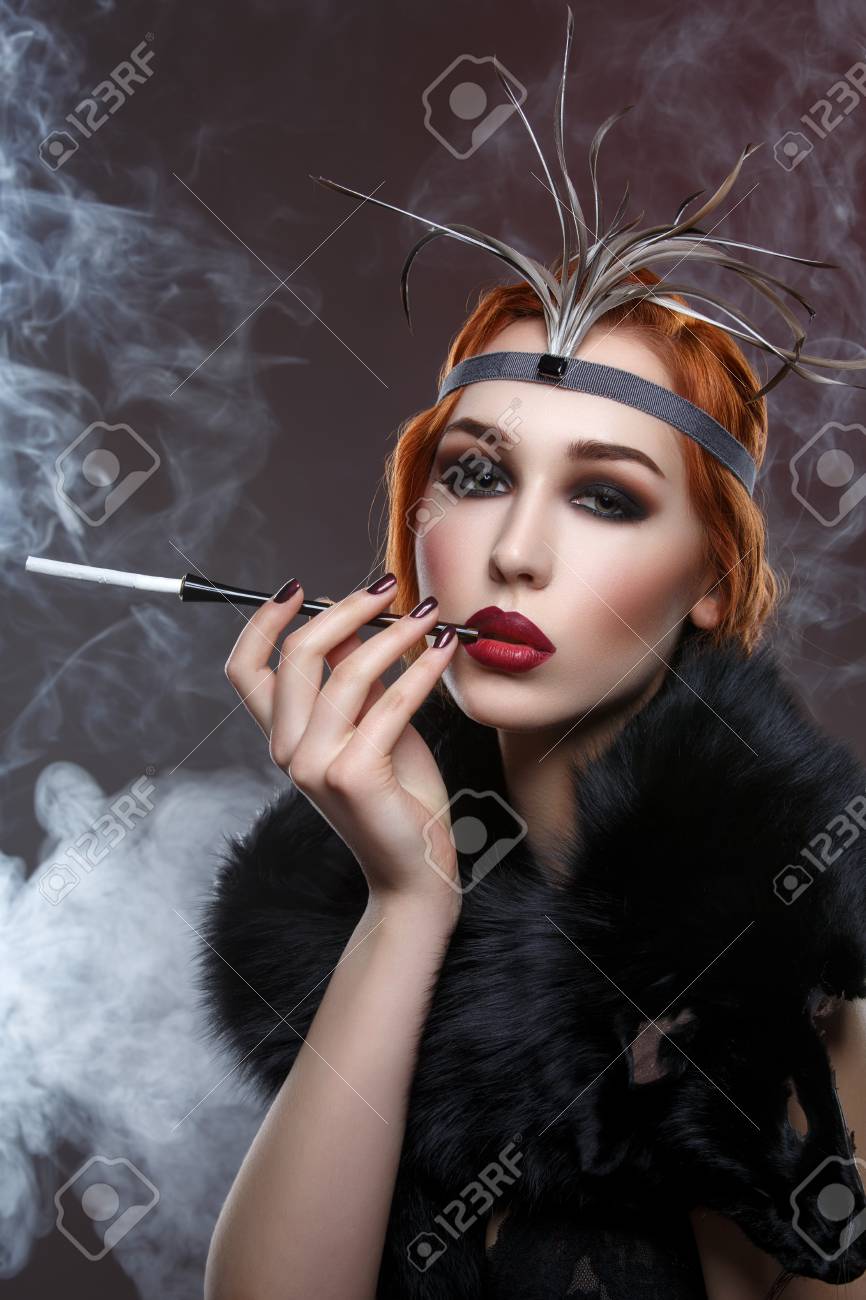 Portrait Of A Woman With A Cigarette Holder Stock Photo Image
