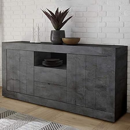 Nouvomeuble Buffet Gris Moderne 180 Cm 2 Portes 2 Tiroirs Urban