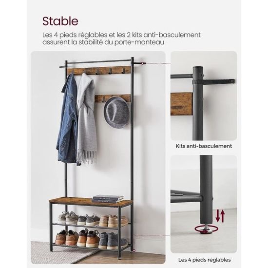 Vasagle Grand Porte Manteaux De Style Industriel Avec Banc A