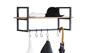 Combine Porte Manteau Mural Etagere Bois Metal 1 Porte