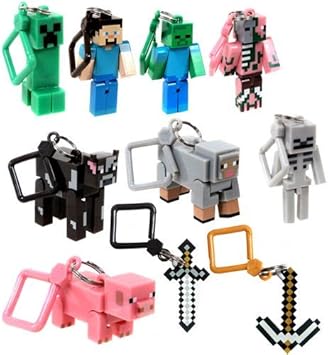 10pcs Multi Pattern Minecraft Micro World 2 Hanger Keychain