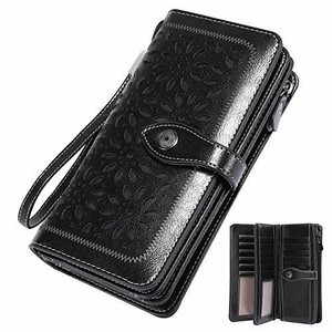 Waccet Portefeuille Femme Cuir Grande Capacite Rfid Blocage Noir