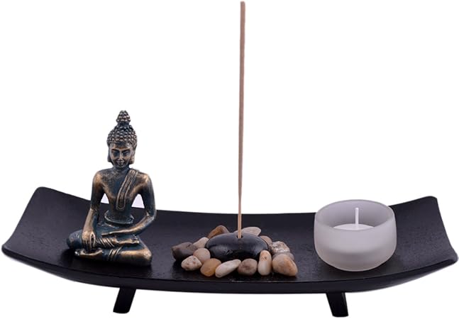 Support Jardin Zen Avec Statuette Du Bouddha Porte Encens Et