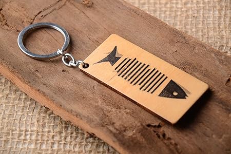 Porte Cles En Bois Fait Main Rectangulaire Avec Poisson Accessoire