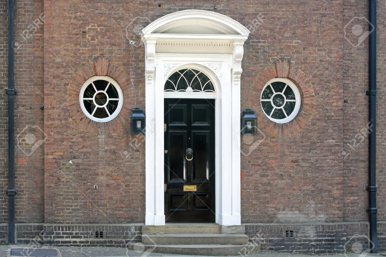 Porte D Entree Noir Sur La Maison Traditionnelle De Londres Banque