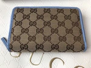 Gucci 420113 Femmes Cuir Toile Portefeuille Porte Monnaie Bleu