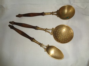 Ustensile De Cuisine En Laiton Manche Bois Et Porte Ustensiles Ebay