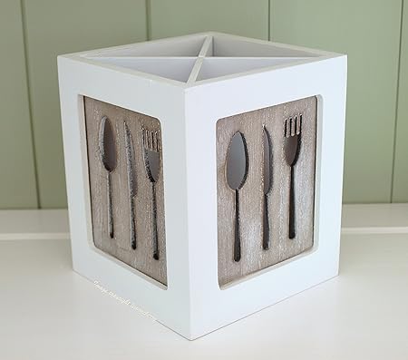 Range Couverts Pot A Ustensiles En Bois Blanc Couteaux