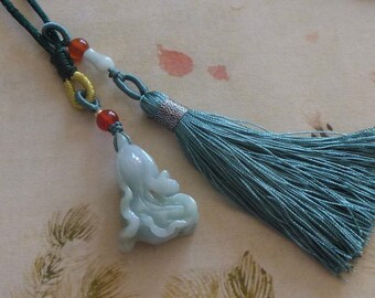 Pendentif Chinois Feng Shui Jade Pierre Porte Bonheur Collier