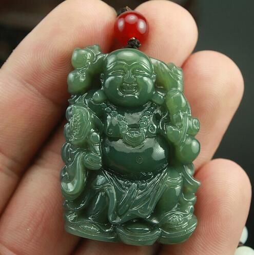 Collier Porte Bonheur Bouddha Rieur En Jade Vert