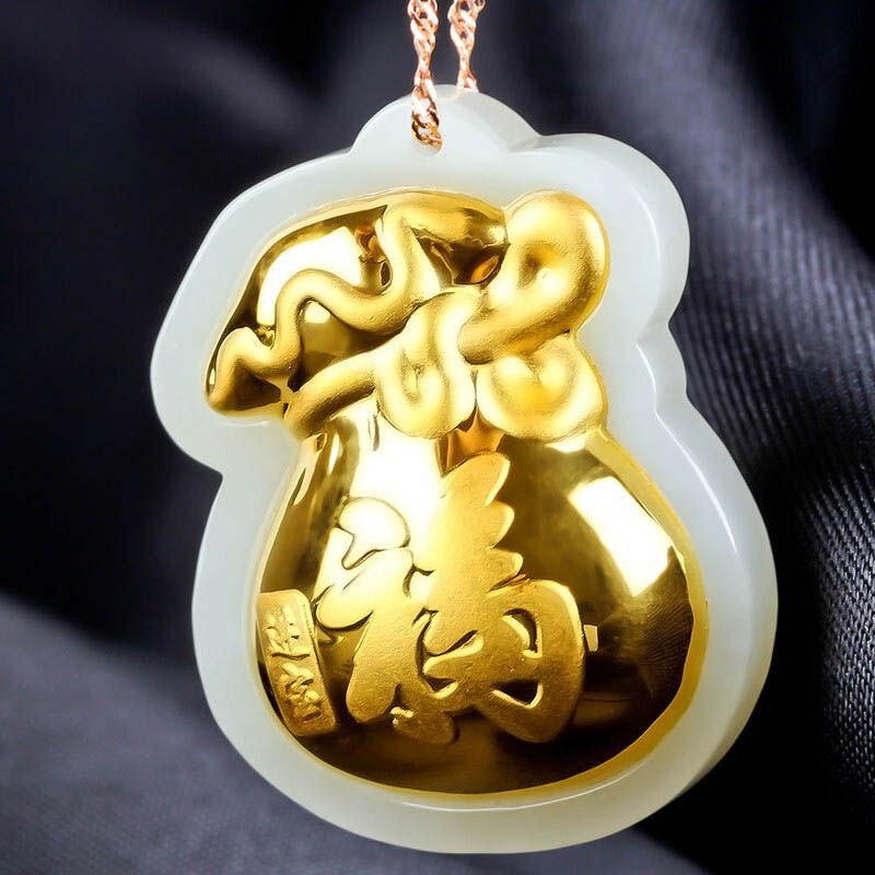 Pendentif En Jade Representant Une Gourde Wulou Porte Bonheur