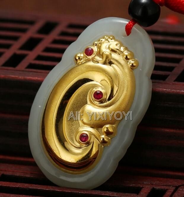 Acheter Beau Jade Hetian Blanc Naturel Or 18 Carats Incruste De