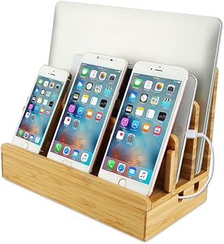 Bamboo Charging Station Phone Stand Multiple Devices Cord