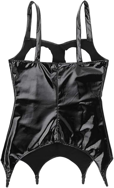 Winying Femmes Porte Jarretelles Noir Wetlook Cuir Verni