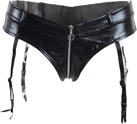 Femme Sexy Porte Jarretelles En Dentelle Cuir Zippe Culotte