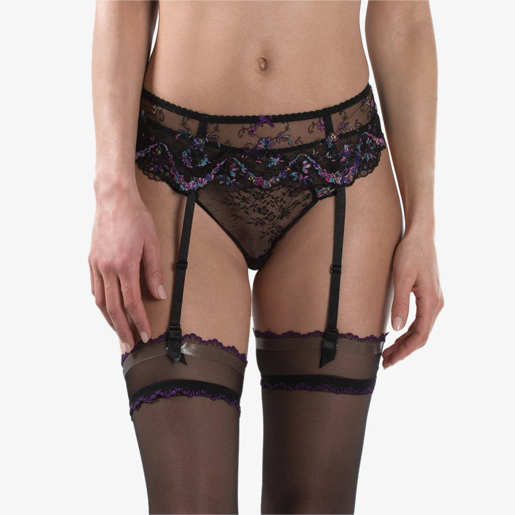 Porte Jarretelles Ventagli Noir Rose Lingerie Sipp