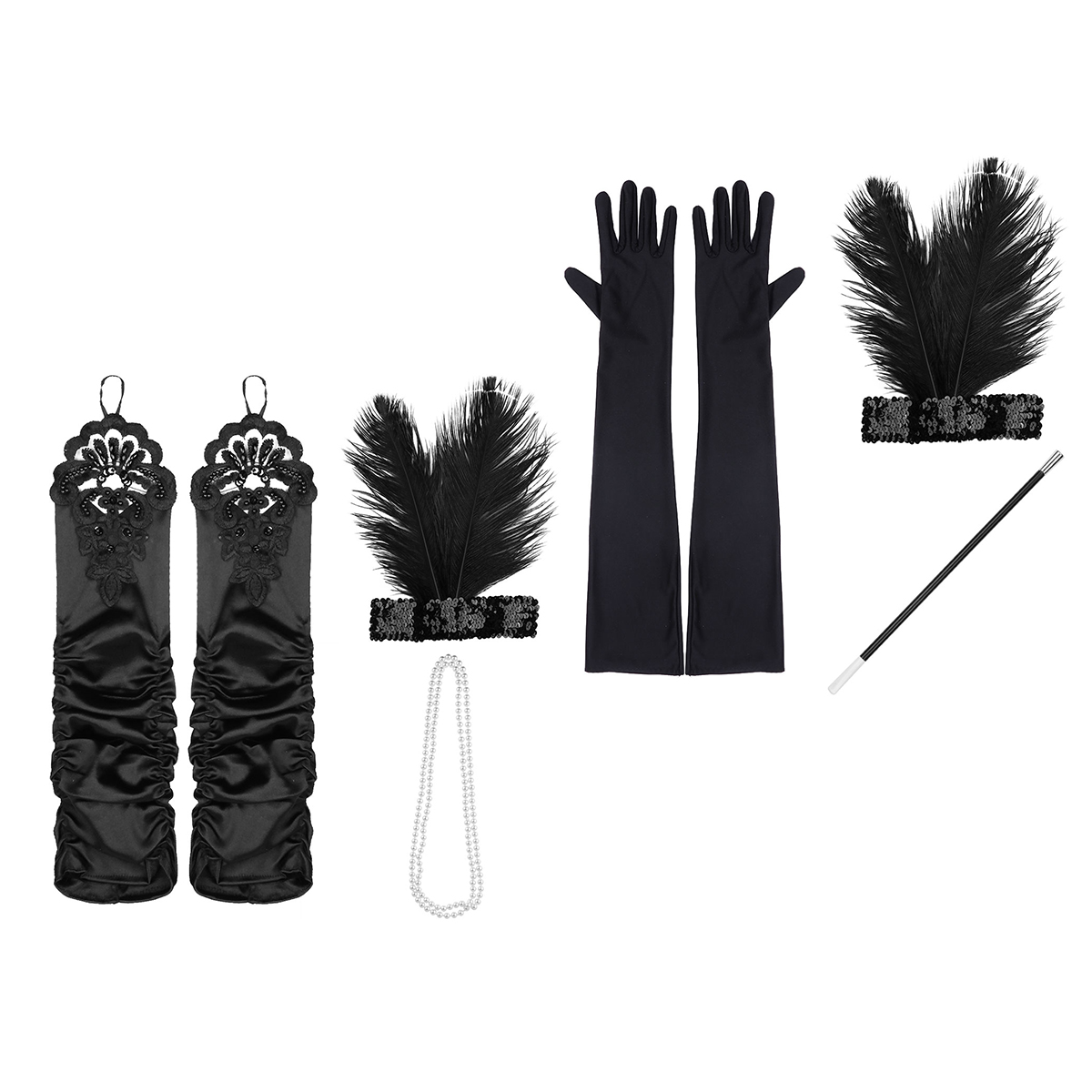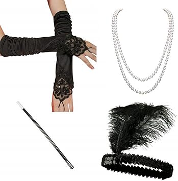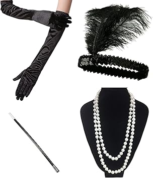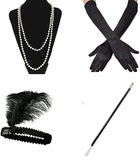 4 Pcs Accessoires Set Flapper Bandeau Collier Longs Gants Noirs