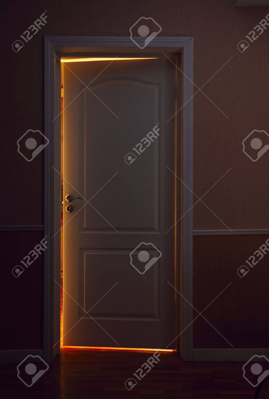 Lumiere De La Porte Non Fermee Dans Une Piece Sombre Banque D
