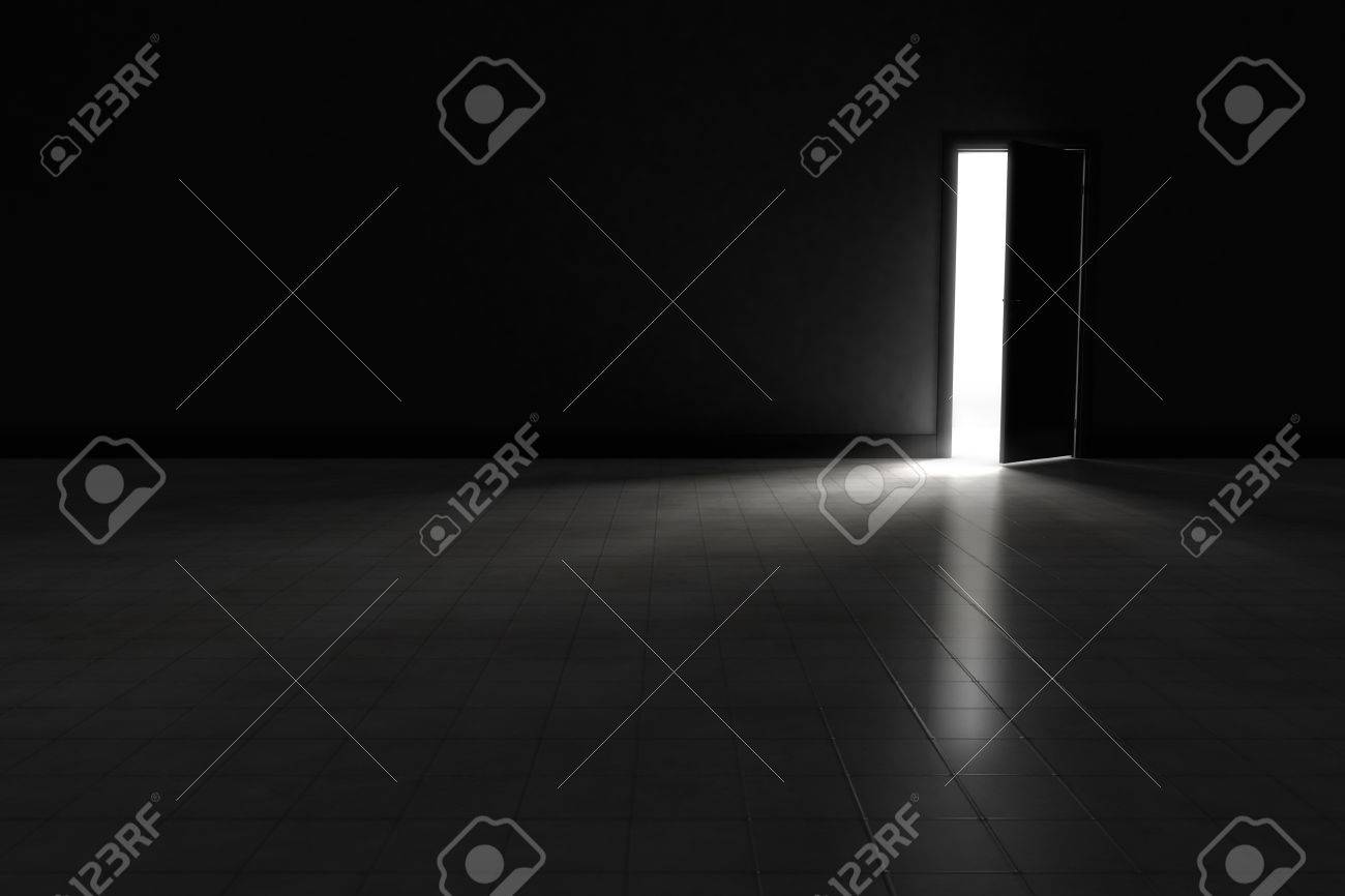 Piece Sombre Avec La Porte Ouverte Et La Lumiere Derriere Elle