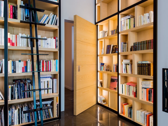 Porte A Soufflet Bibliotheque Avec Serrure Invisible Mur 10