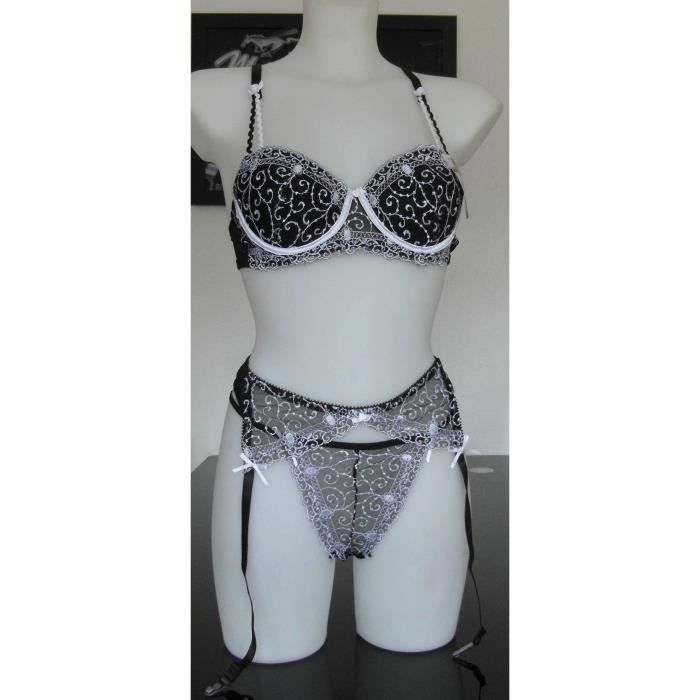 Ensemble 3 Pieces Porte Jarretelles Noir Et Blanc Achat Vente