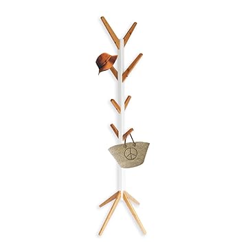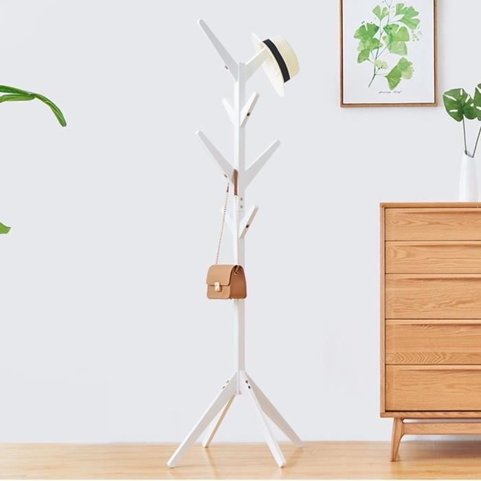 175cm Porte Manteau Sur Pied En Bois Blanc Forme D Arbre Avec 8