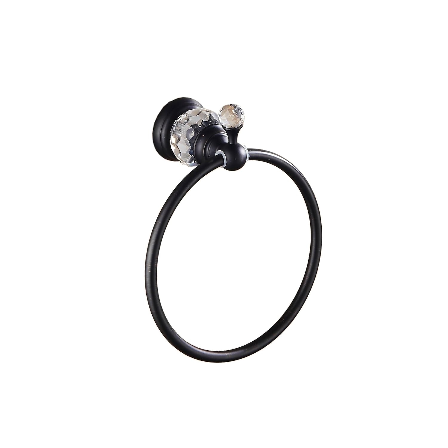 Cristal Noir Anneau Porte Serviettes Laiton Support Mural Patere