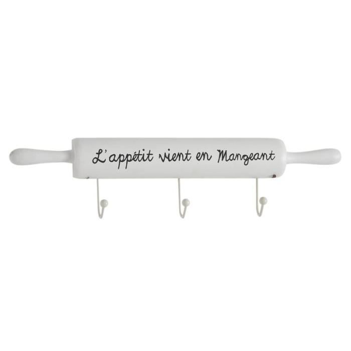 Patere De Cuisine En Bois 3 Crochets Design Vintage Gourmand Gris