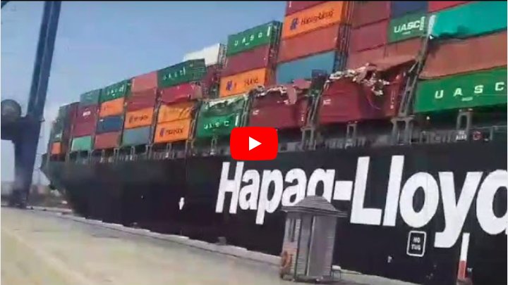 Video Un Portique S Effondre Sur Un Porte Conteneurs D Evergreen