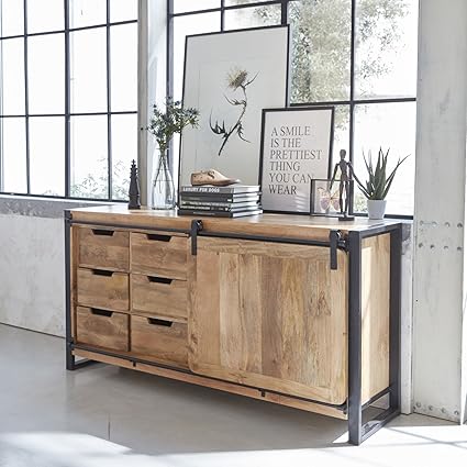 Made In Meubles Buffet Industriel Porte Coulissante Manguier 6