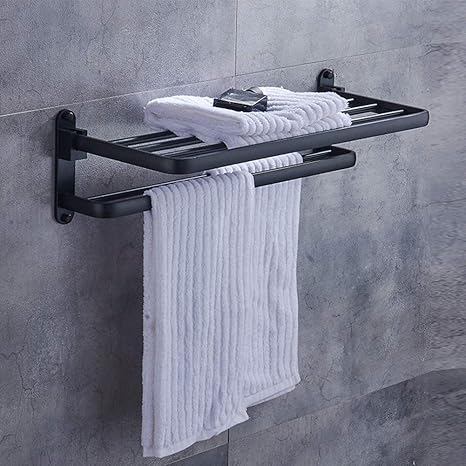 Double Pliable Porte Serviettes Murale Noir En Aluminium Avec
