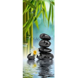 Sp1118 83x204cm Sticker Porte Trompe Oeil Galets Bambou Reflet Spa