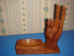 Ancien Cendrier En Bois Sculpte Avec Main Porte Cigarette Vintage
