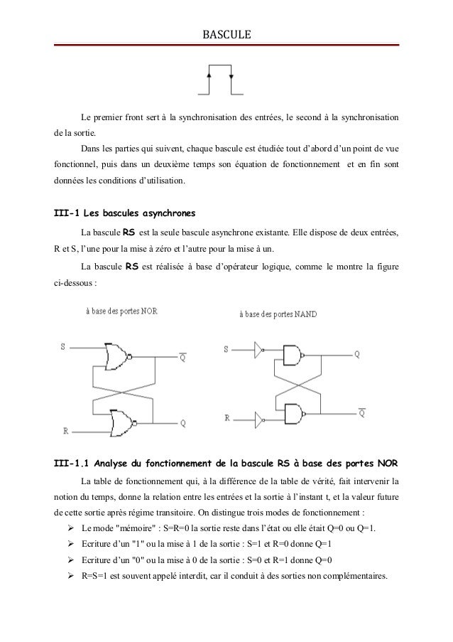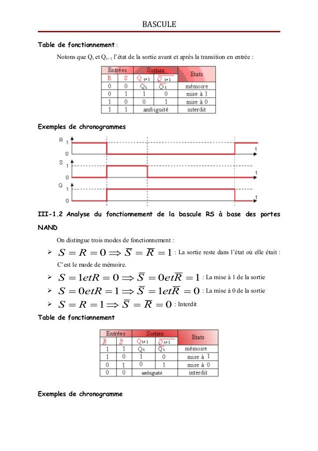 Prof Ge Cours Bascules Bistables Rs A Nand Et A Nor