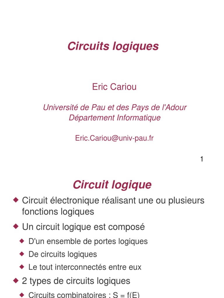 Http Ecariou Perso Univ Pau Fr Cours Archi Cours 3 Circuits Logiques Pdf