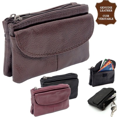 Porte Monnaie En Cuir Veritable Souple Avec Fermeture Eclair Pour