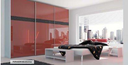 Dressing 3 Portes Coulissantes Verre Laque Rouge Frise Floral