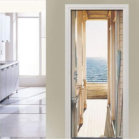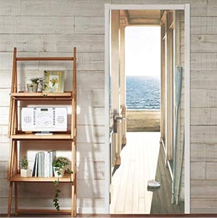 Ruoxin312 Porte Autocollant Porte Ouverte A La Mer Art Photo 3d