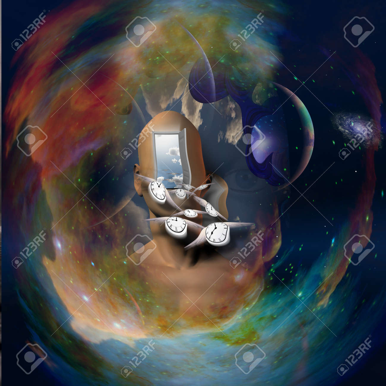 Peinture Abstraite La Tete De L Homme Avec La Porte Ouverte A Un