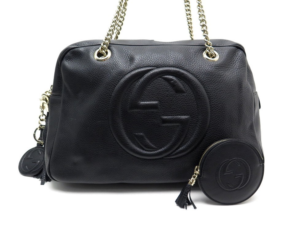 Sac A Main Gucci Soho Chain 353126 Gg Cuir Noir Porte