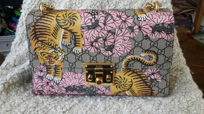 Gucci Sac Bandouliere Padlock Bengale Beige Et Cuire Marron Tigre