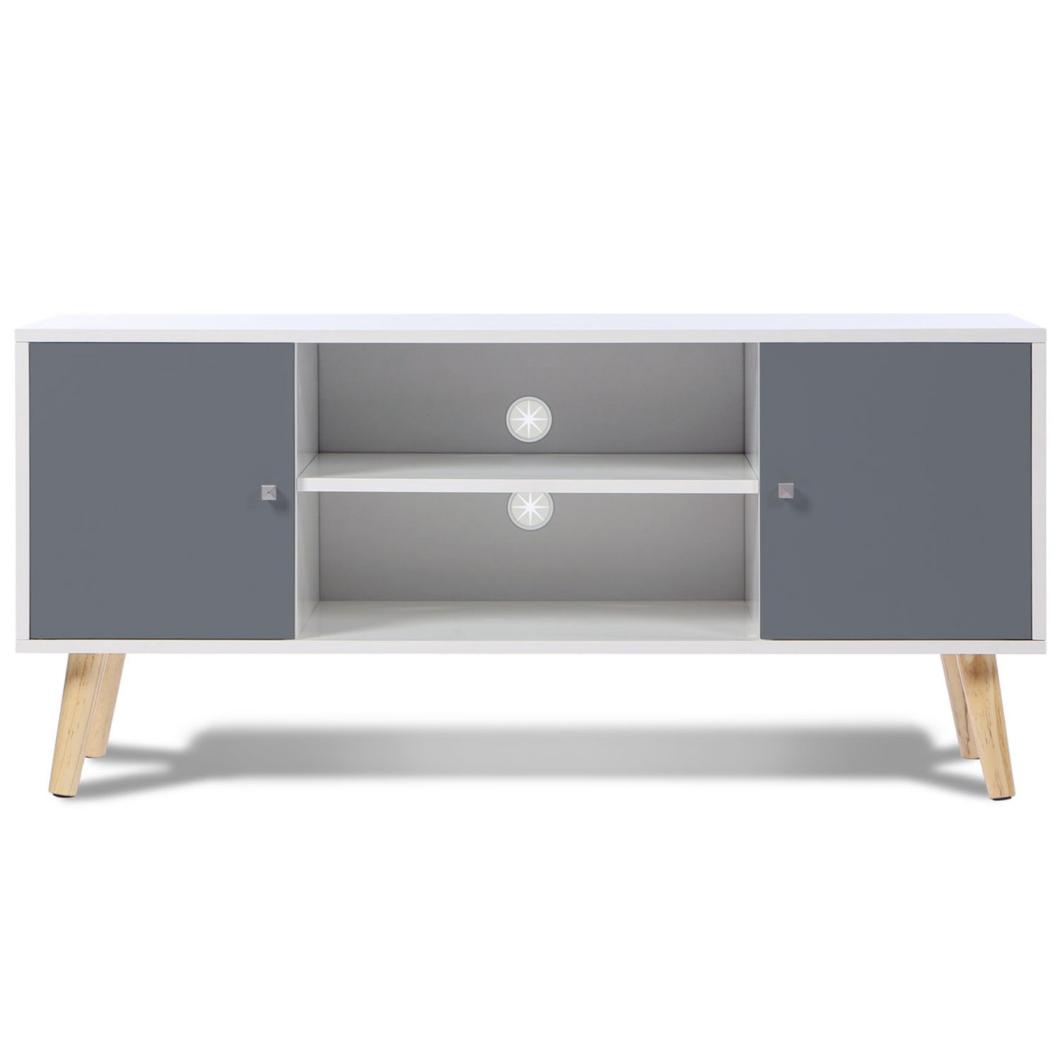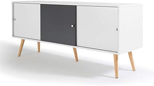 Meuble Tv Scandinave Pas Cher En Bois Gris Et Blanc Id Market