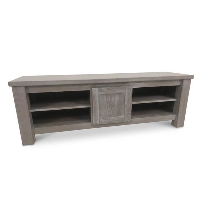 Meuble Tv 1 Porte Bois Massif Gris Gabriel L 160 X L 45 X H 54